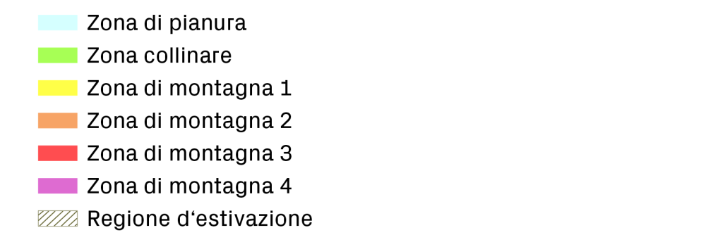 Ora può vedere dal colore della mappa se il luogo si trova in una delle quattro zone di montagna o nella regione d’estivazione.